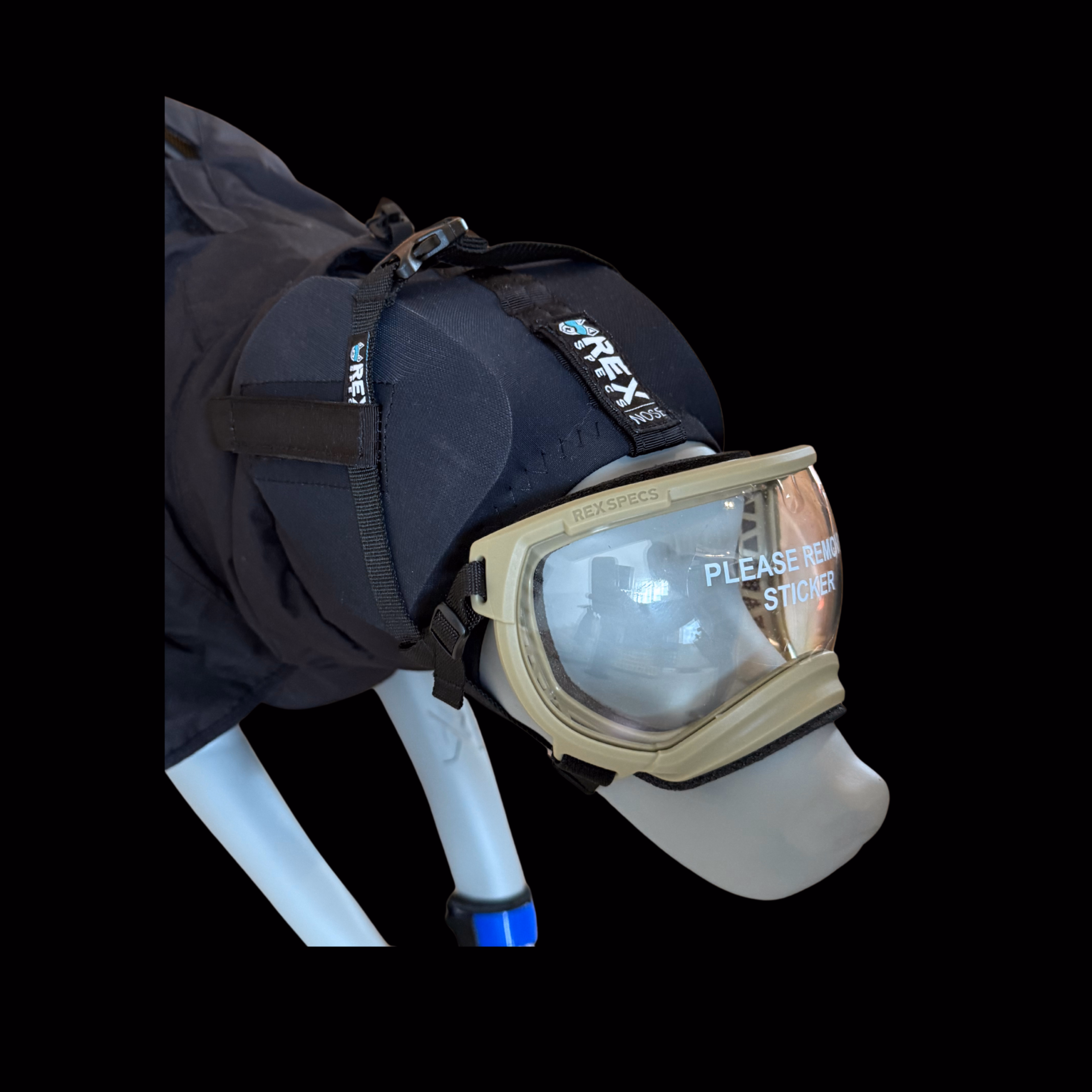 Kombinierbar: Mit Hundebrille oder Maulkorb